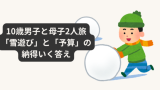 おでかけ・体験レポ 50代母の母子2人旅|10歳男子と雪遊び。高額宿をやめて納得した宿選び 10歳息子と母子2人旅へ。スキーはしないけれど雪遊びをさせてあげたい……。高額な宿に悩んだ末に、50代主婦が「贅沢への罪悪感」を乗り越えて選んだ納得の旅先とは?JR移動・部屋風呂必須という条件で選んだ滋賀・今津エリアの旅行計画を綴ります。 2026.01.24 おでかけ・体験レポ子育て子連れおでかけ、イベント体験記家族と子ども
